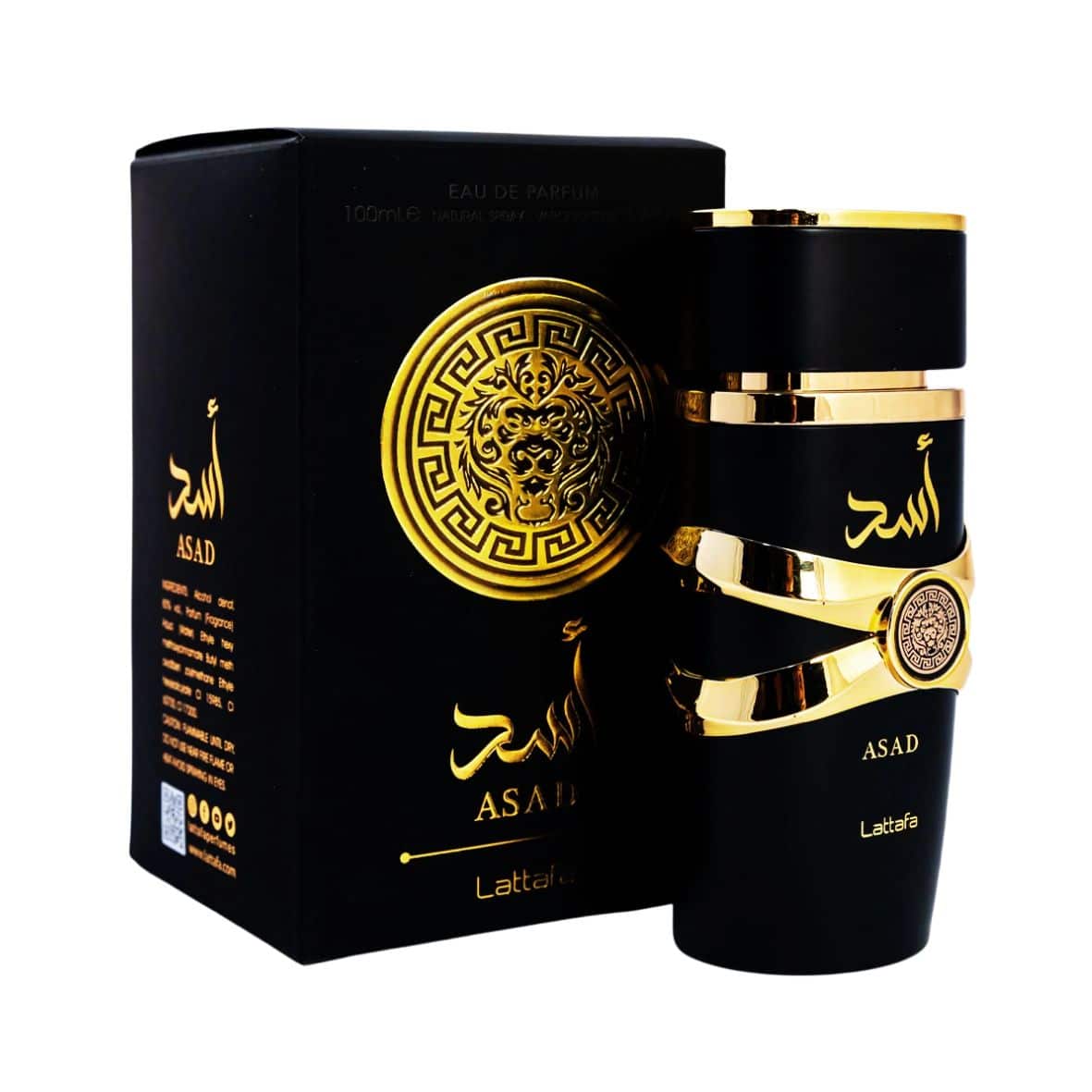 Asad de Lattafa Perfumes es una fragancia de la familia olfativa Ámbar para Hombres. Se lanzó en 2021. Las Notas de Salida son pimienta negra, tabaco y piña; las Notas de Corazón son pachulí, café y iris; las Notas de Fondo son vainilla, ámbar, Madera seca, benjuí y ládano.